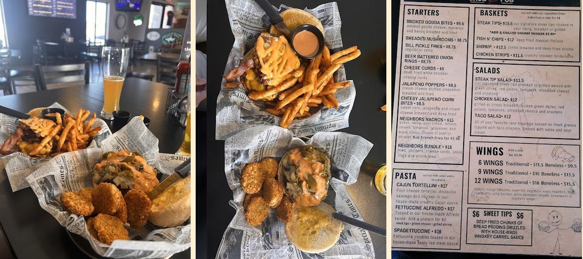 Visiting Neighbors Grub and Pub provides an opportunity to dive into local flavors. Start with the beer-battered onion rings or dill pickle fries, both crowd favorites. For mains, try the Angry Neighbor burger, famed for its bold flavor. Each month brings new offerings to keep the menu fresh.